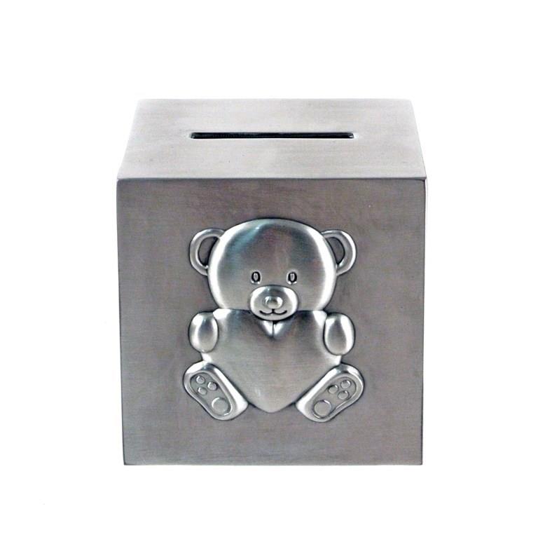$49.99$49.99Pewter look finish Spots for engraving child's date of birth, weight, length, name and date of birth. Rubber stopper for removal of money. Dimensions: 3 1.5"...