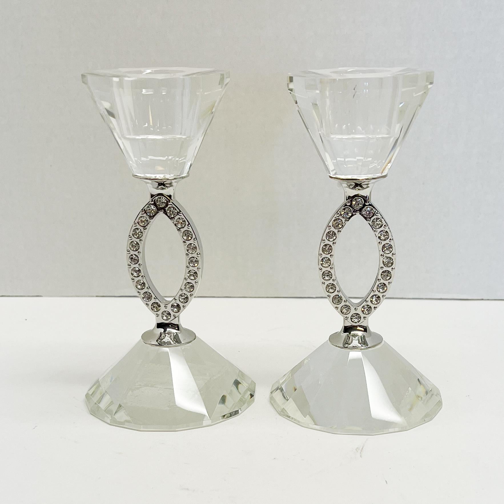 $14.99$14.99 $39.99Crystal taper candle holders with silver stem and rhinestone accents. Dimensions: 5.5 inch tall 3 inch diameter SKU 49759 (matching candle holders available, #49758, and #49757)