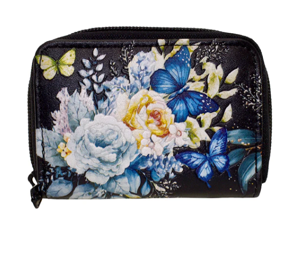 $21.99$21.99Keep your essentials organized in style with this compact black faux leather wallet. Featuring embossed flowers and butterflies with a hand-painted look, it opens with a...