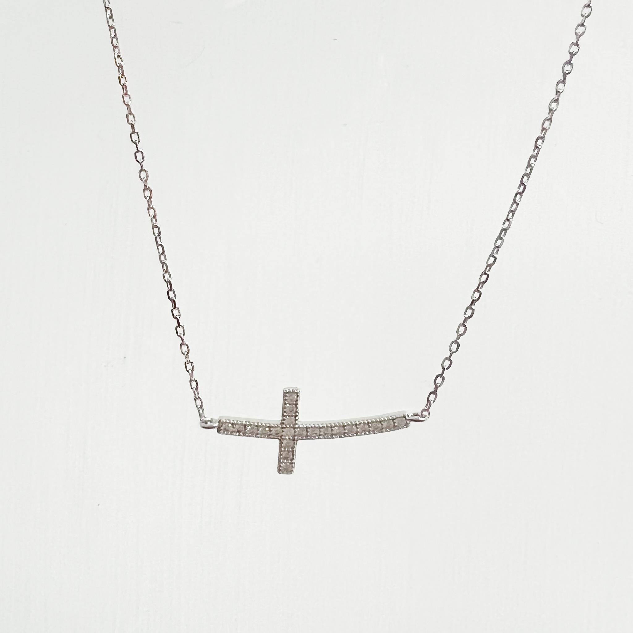 $54.99$54.99Sterling silver CZ curved cross necklace. Cross 1 inch wide. Total lenght 18 inch, adjustible at 16 inch and 17 inch SKU 44890