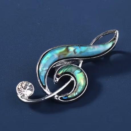 Celebrate your love of music with this elegant silver-tone treble clef brooch featuring a stunning abalone inlay. Measuring approximately 2" x 1", it can also be...