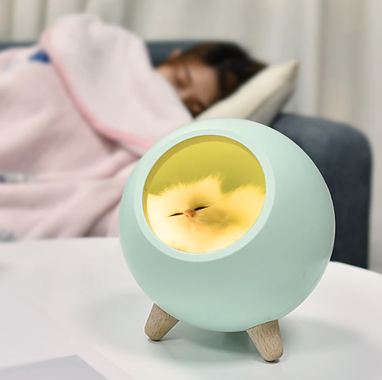Add a touch of charm to your space with the Little Pet House Green Globe Atmosphere Light. Featuring a small grey cat inside, this rechargeable light offers stepless dimming to adjust brightness as you like. Energy-efficient design automatically turns off after two hours. Measures 12.5 cm long x 11.5 cm wide. Perfect for bedrooms, desks, or cozy corners.