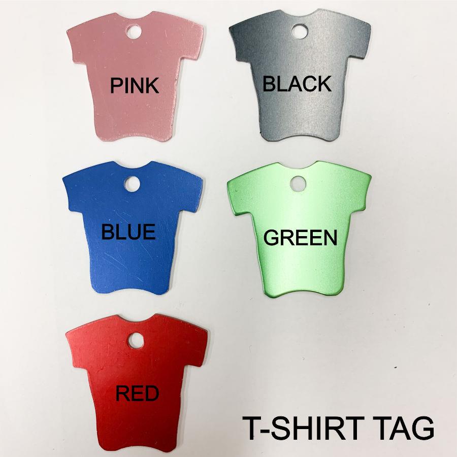 Engraved pet tags for your dog or cat. The price includes having up to 20 letters engraved on one side. If you'd like engraving on the back side just add item number 37557 to your cart. Include engraving details in the notes at checkout. Size ranges from 1.25" wide to 1.5" wide. All coloured tags are anodized aluminum. The silver tags are stainless steel.