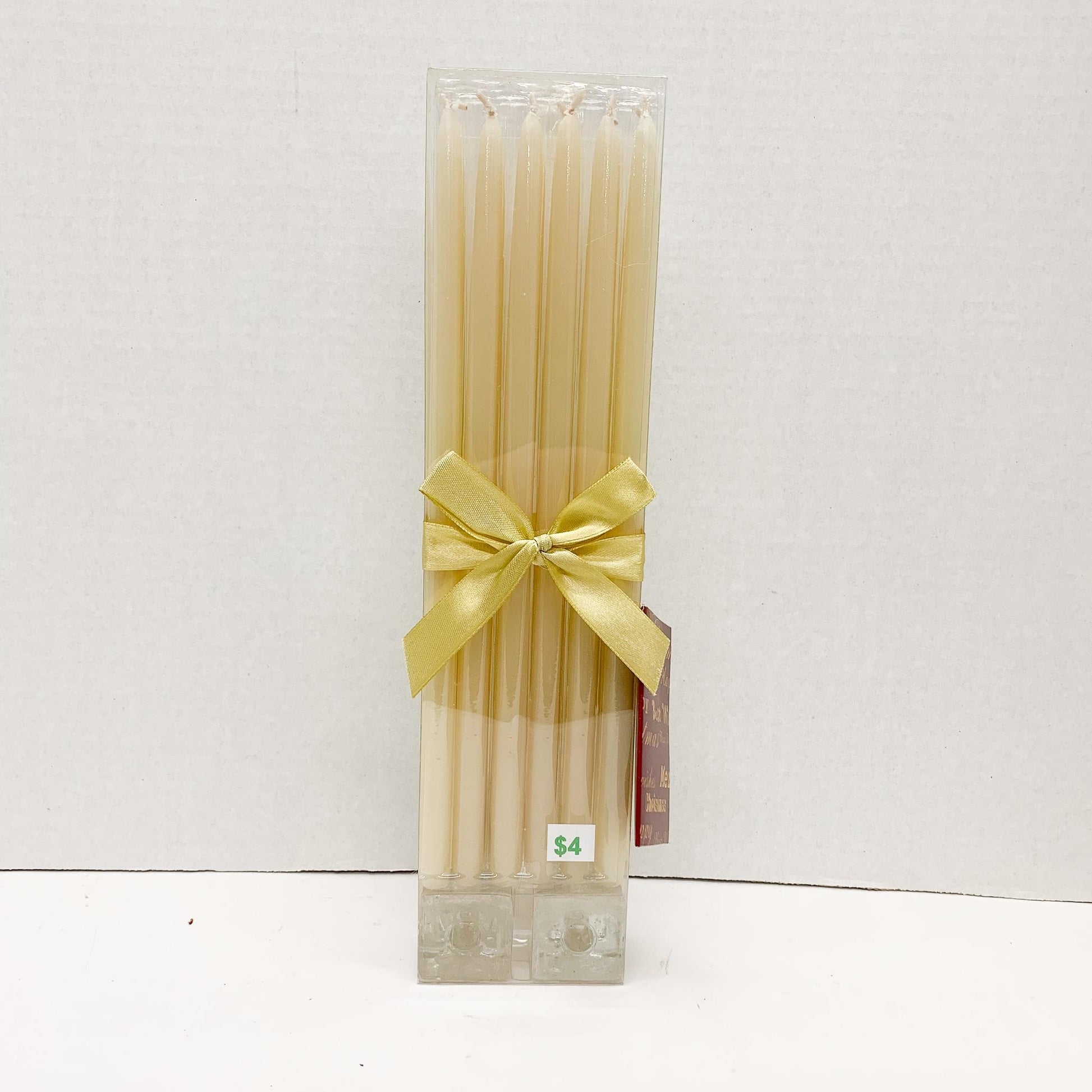 12 Tall Slim Ivory Candles with 2 holders
